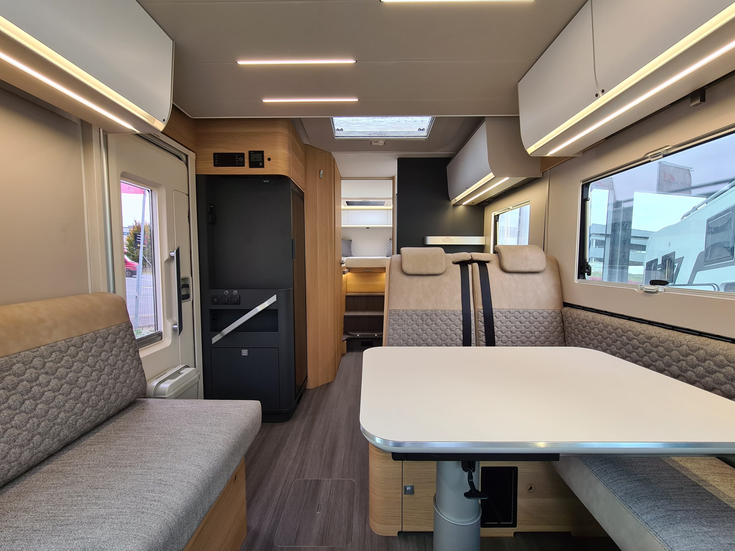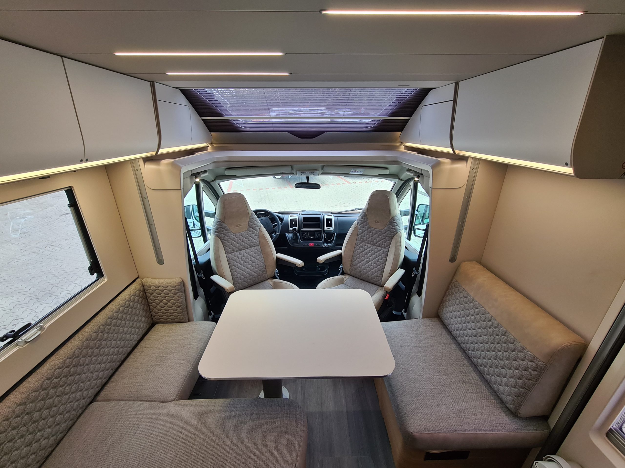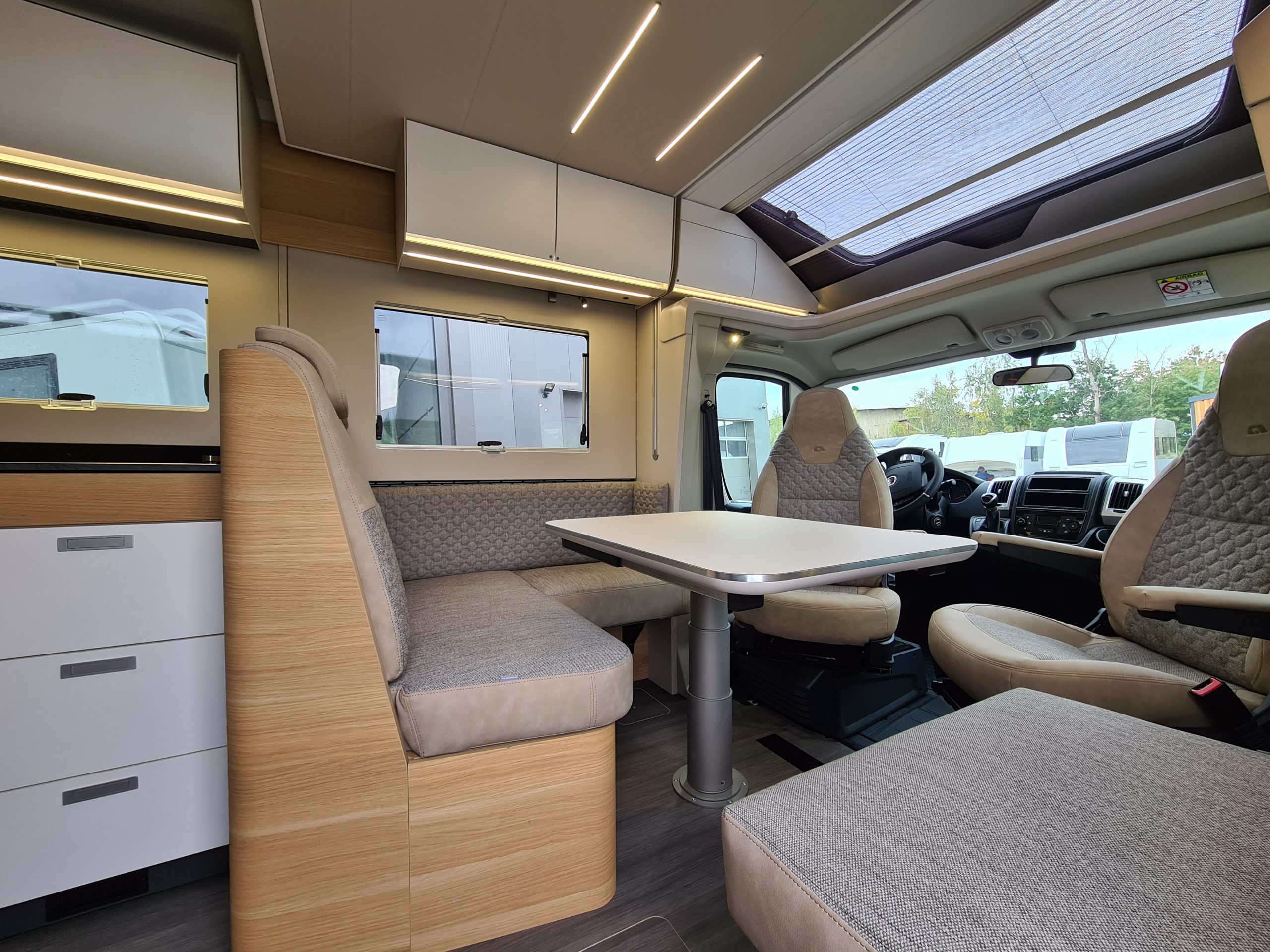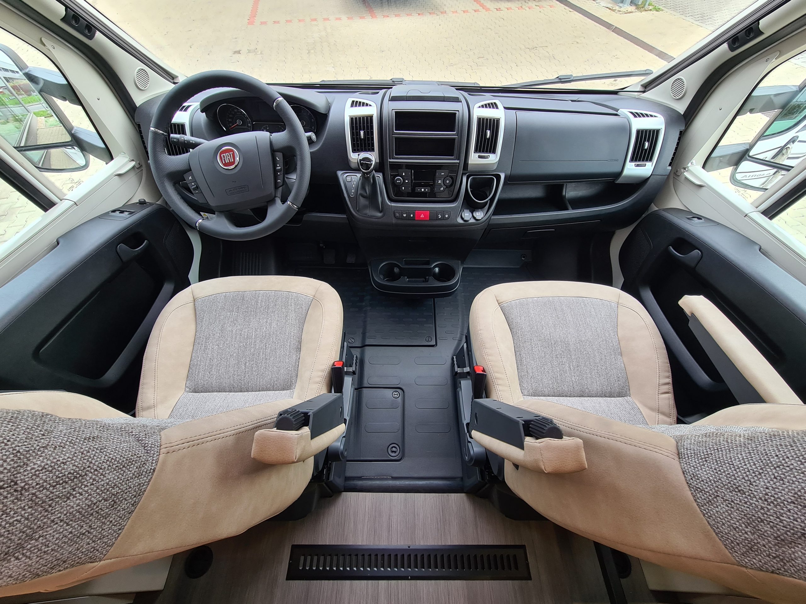 - Nastavitelná, otočná kapitánská sedadla v kabině, čalounění stejné jako v obytné části